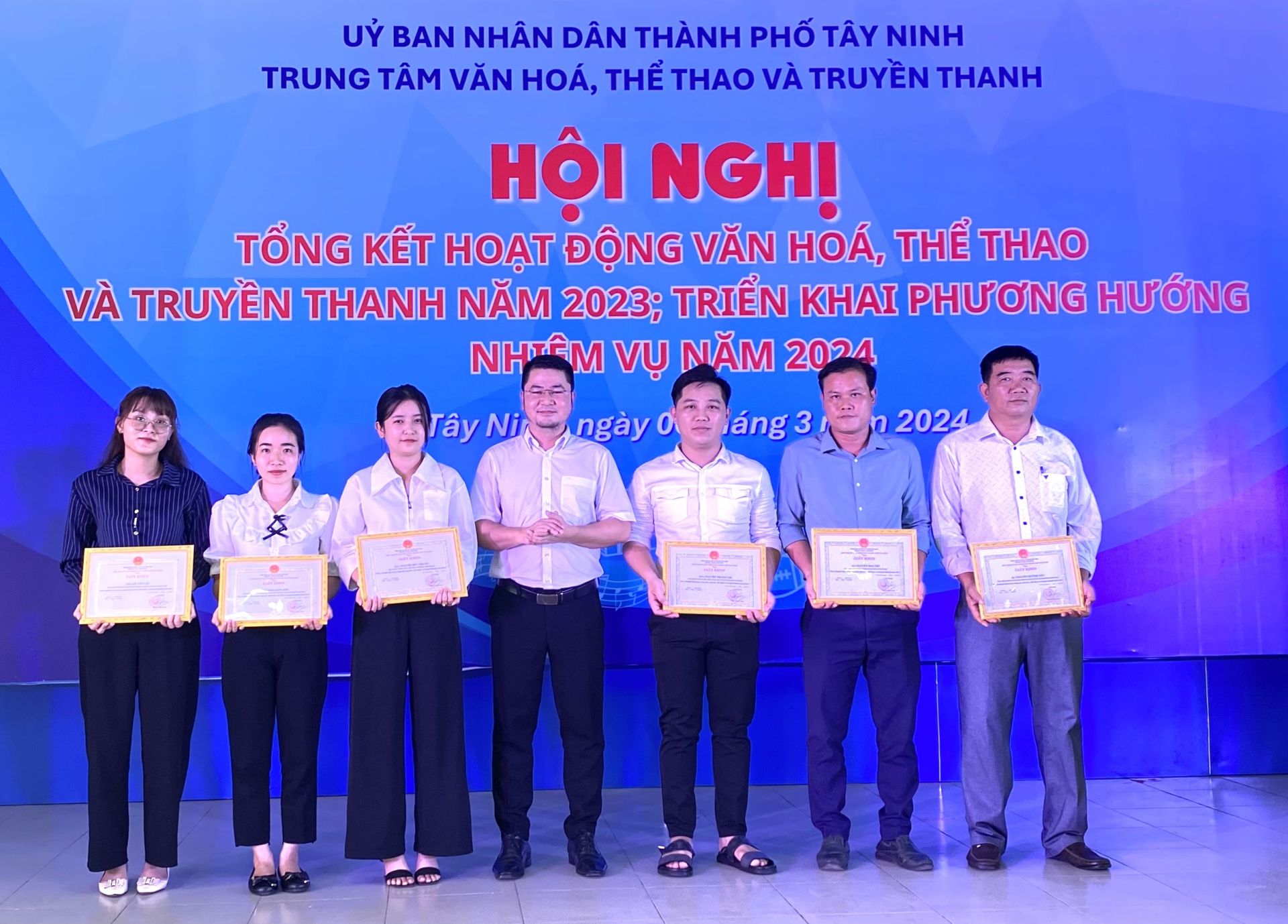 Dịp này, Sở Văn hoá, Thể thao và Du lịch Tây Ninh trao tặng giấy khen cho 1 tập thể, 2 cá nhân có thành tích xuất sắc trong hoạt động văn hoá, thể thao và du lịch năm 2023; UBND Thành phố khen thưởng 5 tập thể và 12 cá nhân xuất sắc trong công tác văn hoá, thể thao và truyền thanh năm 2023.