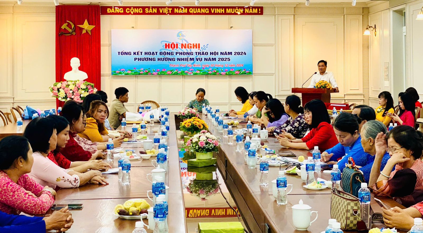 Chiều 30.12, Hội Liên hiệp Phụ nữ (LHPN) thành phố Tây Ninh tổ chức hội nghị tổng kết công tác hội và phong trào phụ nữ năm 2024. Đến dự có bà Kim Thị Minh– Phó Chủ tịch Hội LHPN tỉnh, ông Nguyễn Thanh Cường– Phó Bí thư Thường trực Thành uỷ.
