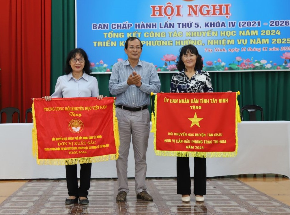 Tại hội nghị, Trung ương Hội Khuyến học Việt Nam tặng Cờ thi đua xuất sắc cho Hội Khuyến học thành phố Tây Ninh; trao bằng khen cho 8 tập thể, 3 cá nhân có thành tích xuất sắc trong phong trào thi đua khuyến học, khuyến tài, xây dựng xã hội học tập năm 2024.