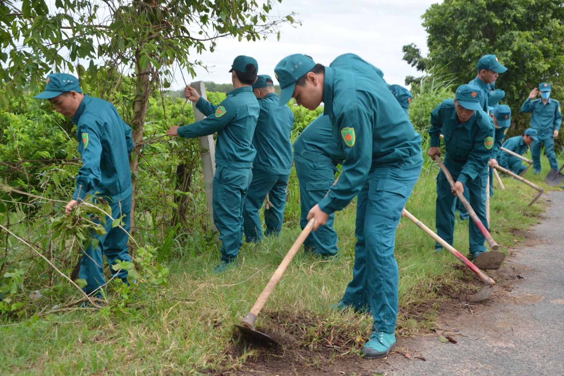 Đại đội dân quân cơ động thành phố làm công tác dân vận trên địa bàn xã Thạnh Tân.