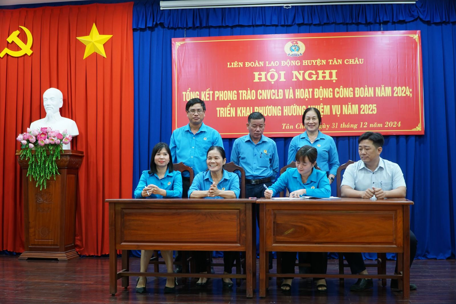 Theo báo cáo của LĐLĐ huyện Tân Châu, trên địa bàn huyện hiện có 122 công đoàn cơ sở (CĐCS), có 44 CĐCS ngoài nhà nước; tổng số đoàn viên toàn huyện là 5.669, trong năm đã phát triển thêm 347 đoàn viên; toàn huyện thành lập mới 5 CĐCS. Các CĐCS giới thiệu 132 đoàn viên ưu tú và đã kết nạp 45 đảng viên.