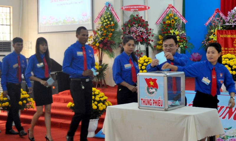 | Các đại biểu bỏ phiếu bầu BCH Huyện đoàn Dương Minh Châu nhiệm kỳ 2017-2022. |