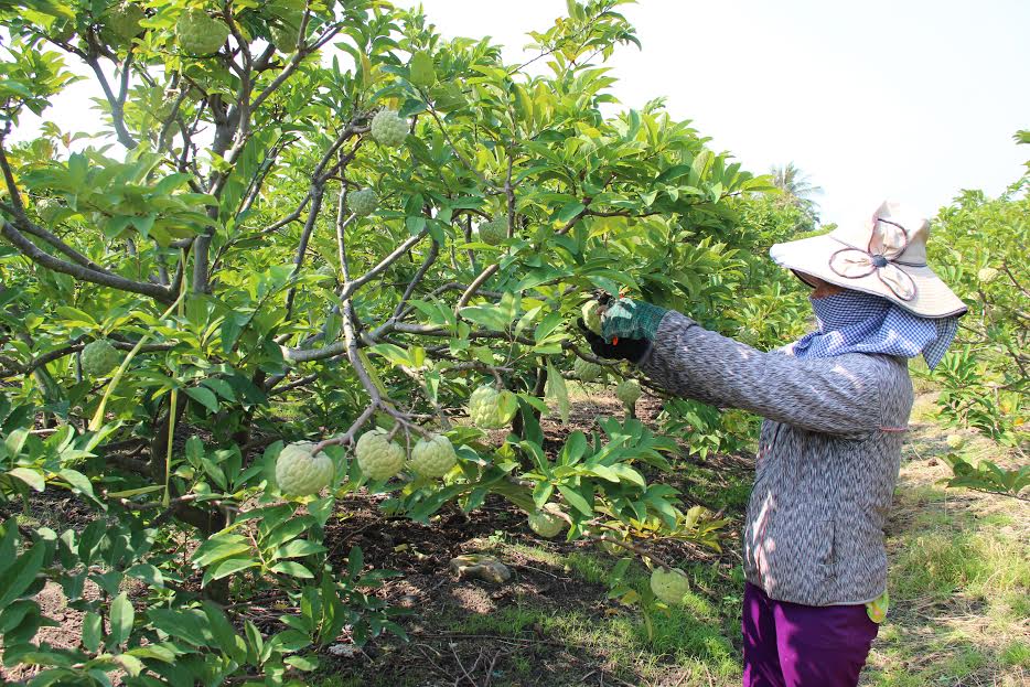 Theo đó, tỉnh hỗ trợ 100% kinh phí đào tạo, cấp giấy chứng nhận (80 triệu đồng) và 30% kinh phí mua vỏ sinh học bao trái (6 triệu đồng/ha) để chống ruồi vàng; đồng thời hướng dẫn nông dân sử dụng thuốc trừ sâu đúng liều lượng, chủng loại theo danh mục cho phép và có thời gian cách ly (khoảng 15 ngày) trước khi thu hoạch, nhằm bảo đảm cho trái mãng cầu không còn dư lượng thuốc trừ sâu trước khi đến tay người tiêu dùng.