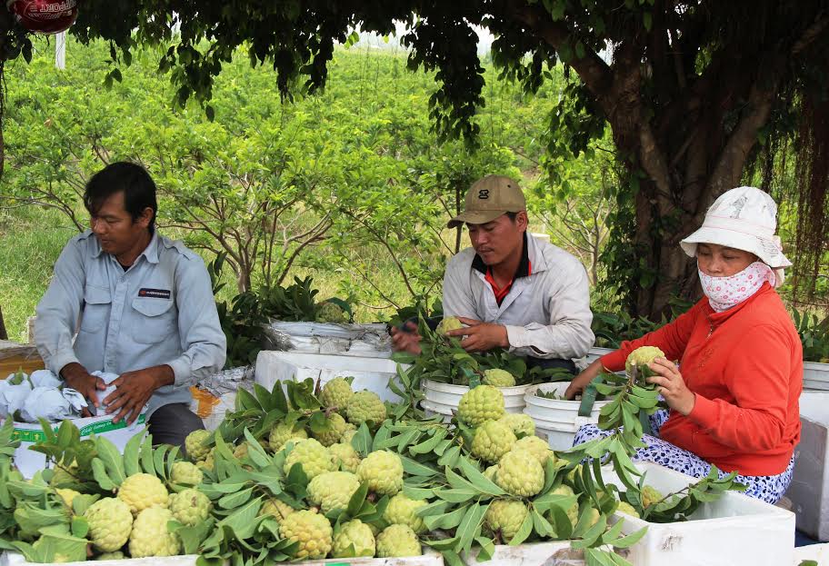 Thu hoạch mãng cầu tại tổ liên kết sản xuất ấp Tân Trung, xã Tân Bình, TP.Tây Ninh.