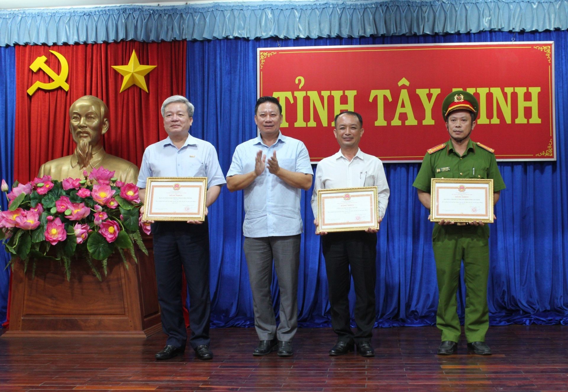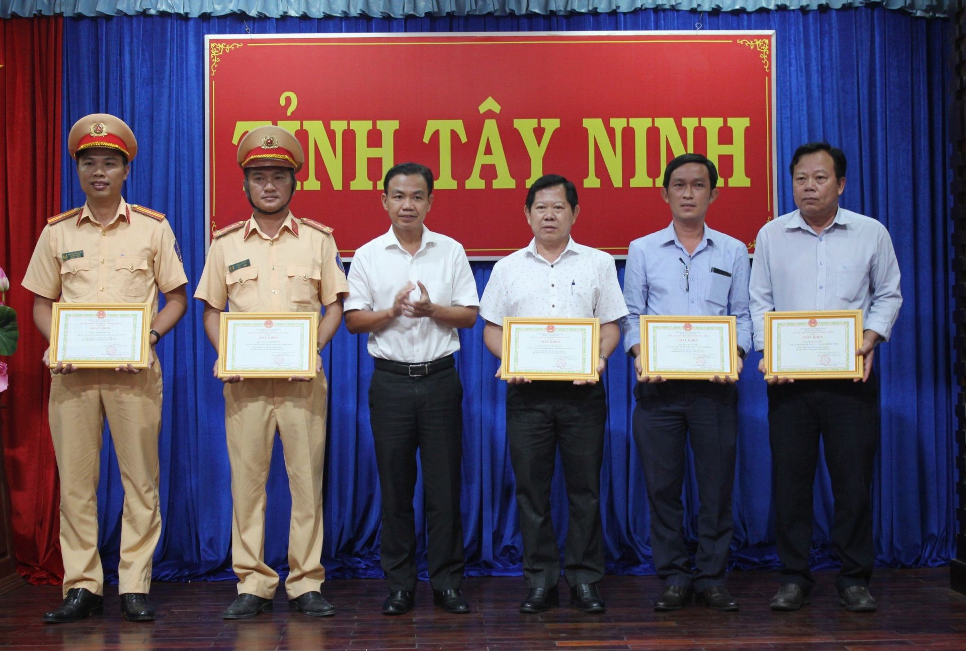 Ông Nguyễn Thanh Ngọc - Chủ tịch UBND tỉnh, Trưởng Ban ATGT tỉnh trao bằng khen cho các tập thể, cá nhân.