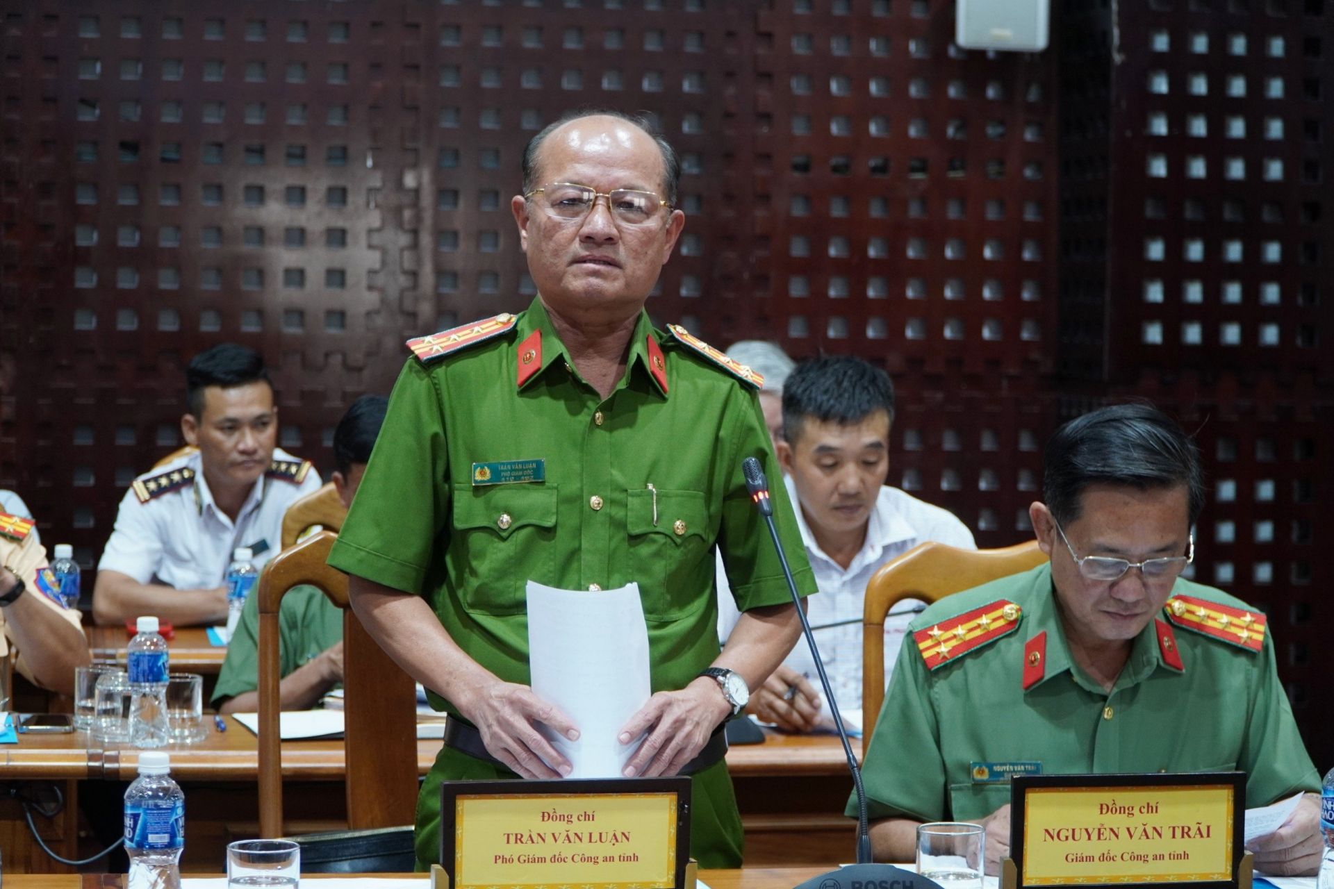 Đại tá Trần Văn Luận – Phó Giám đốc Công an tỉnh phát biểu tại hội nghị.