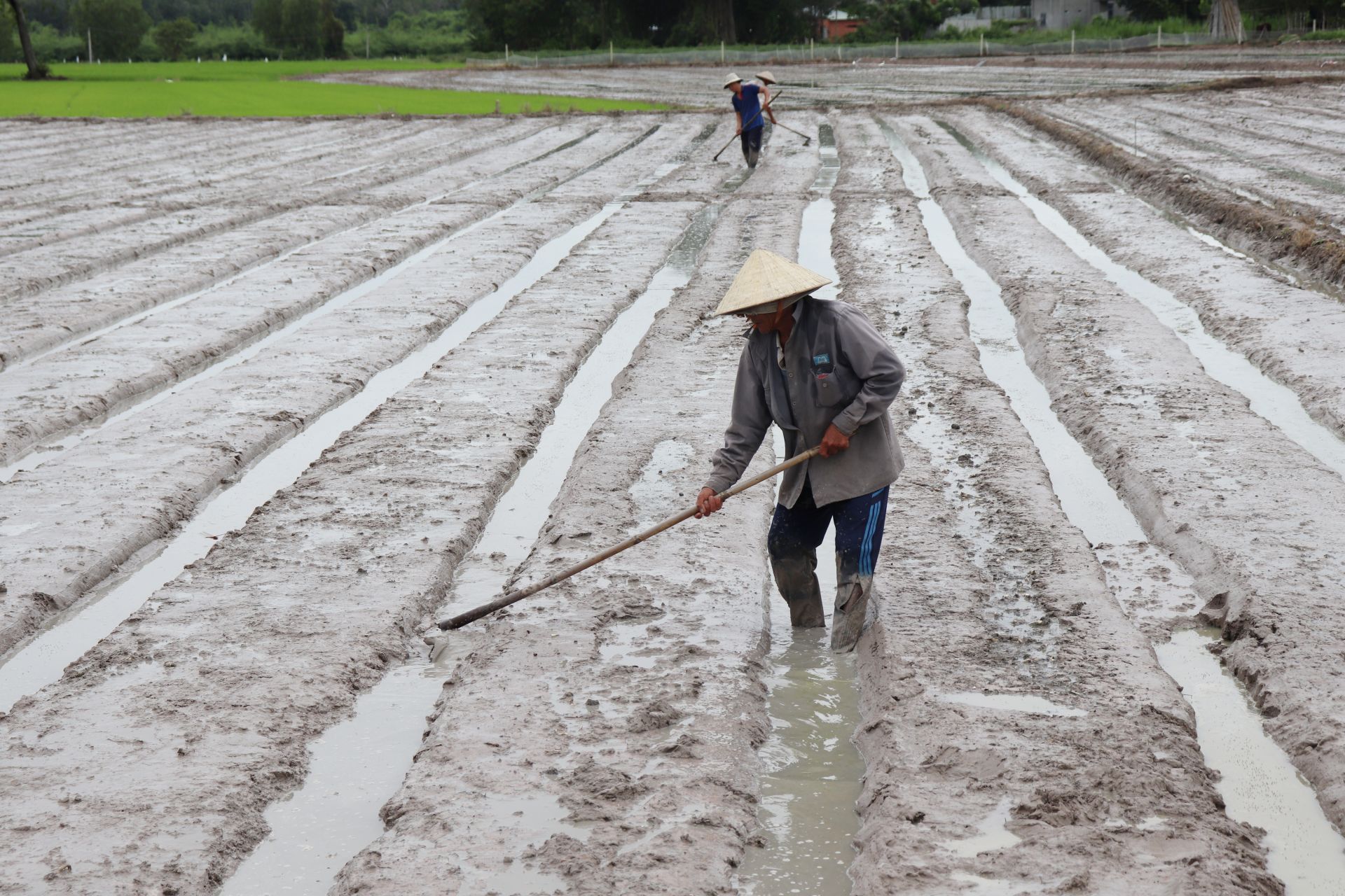 Nông dân chuẩn bị đất để xuống giống bông huệ.