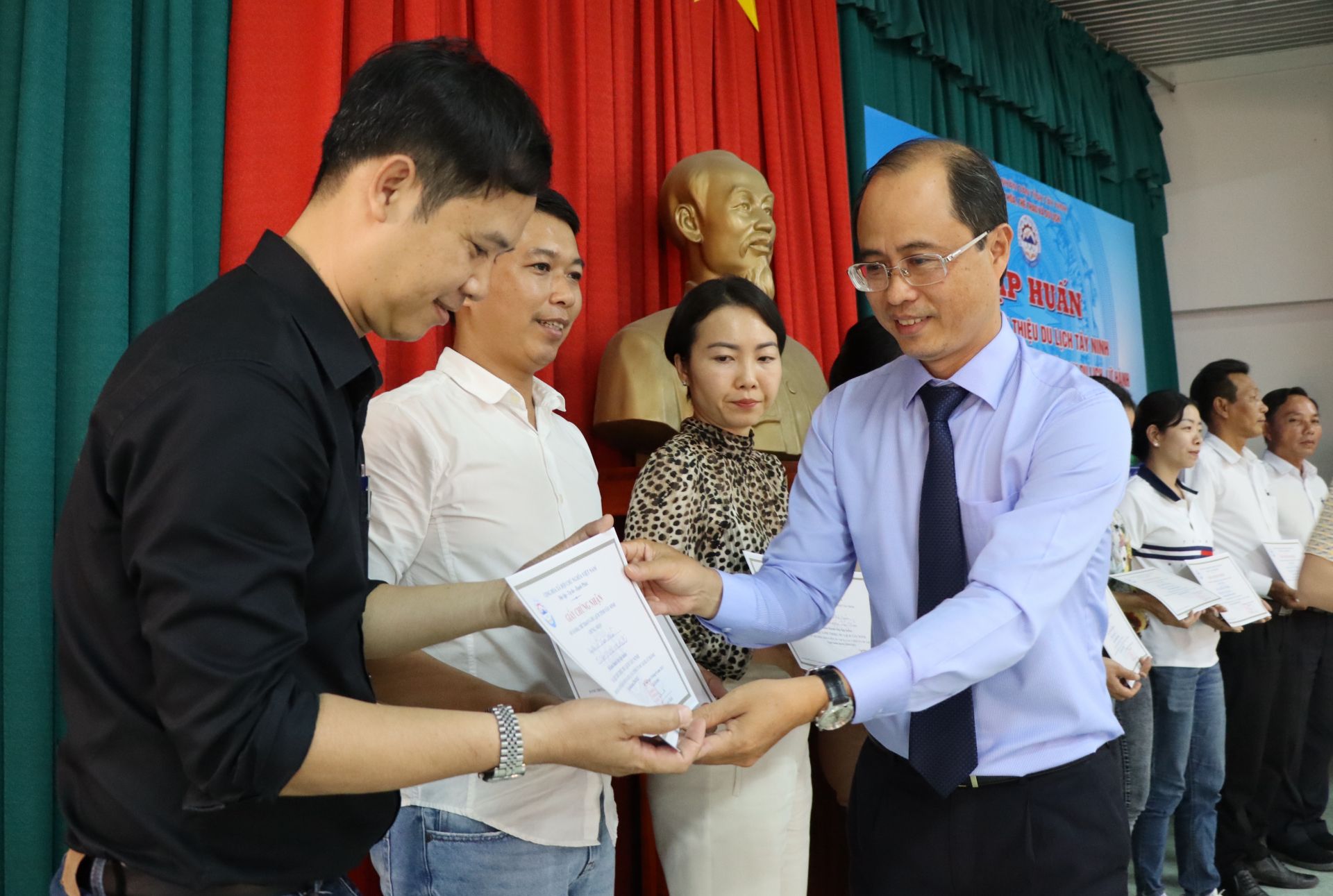 Kết thúc lớp tập huấn, 100% học viên được cấp giấy chứng nhận hoàn thành lớp tập huấn tài liệu giới thiệu du lịch Tây Ninh dành cho các hướng dẫn viên du lịch, các công ty du lịch, lữ hành.