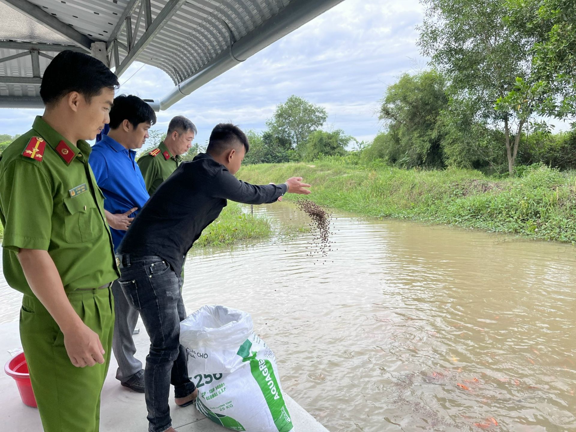 Xã đoàn Thái Bình (huyện Châu Thành) cùng Công an xã tham quan mô hình phát triển kinh tế của trường hợp chấp hành xong án phạt tù, người được đặc xá về địa phương tái hoà nhập cộng đồng. Ảnh minh hoạ
