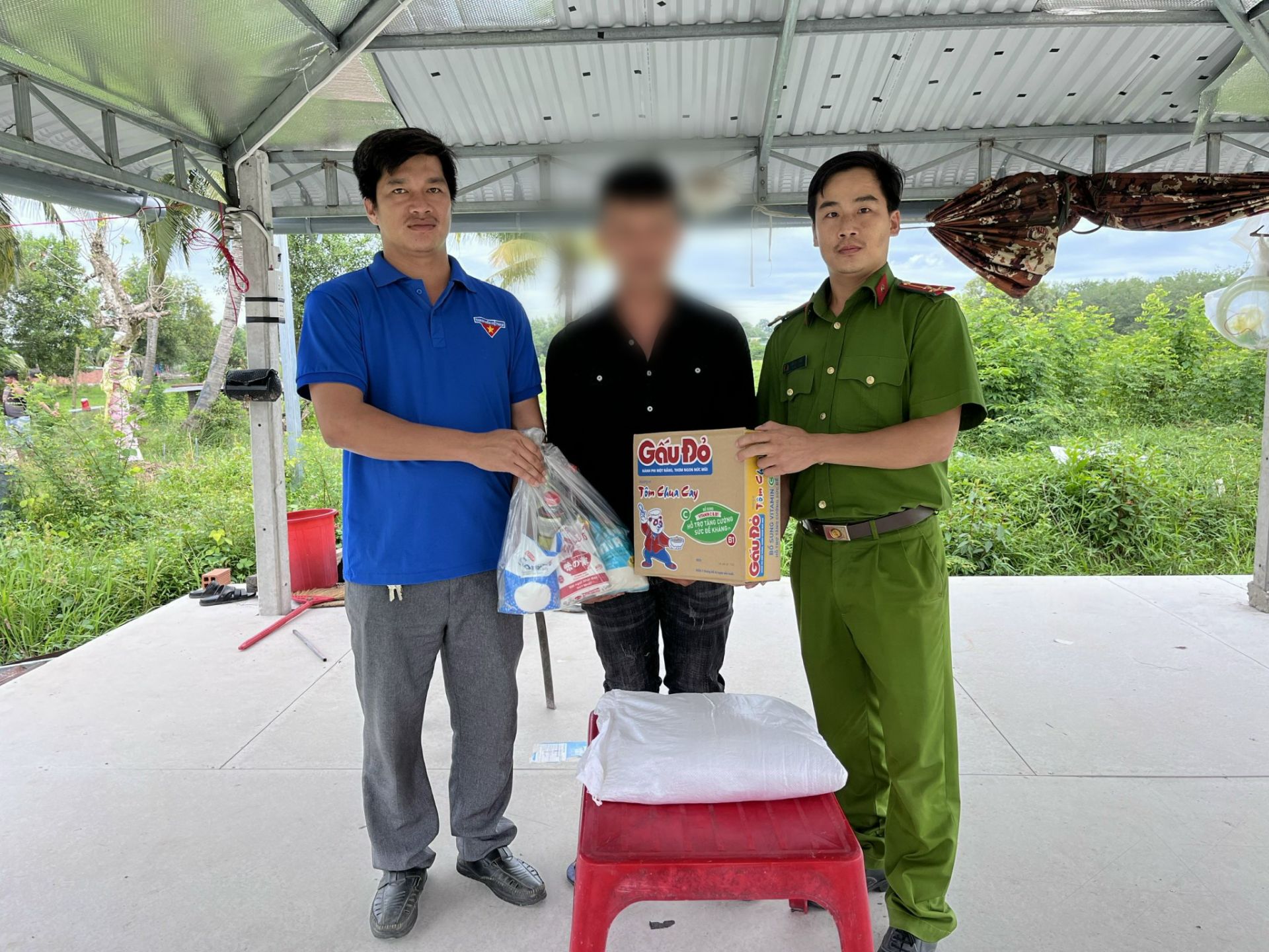 Xã đoàn Thái Bình (huyện Châu Thành) phối hợp cùng Công an xã thăm hỏi, tặng quà trường hợp người được đặc xá về địa phương tái hoà nhập cộng đồng .