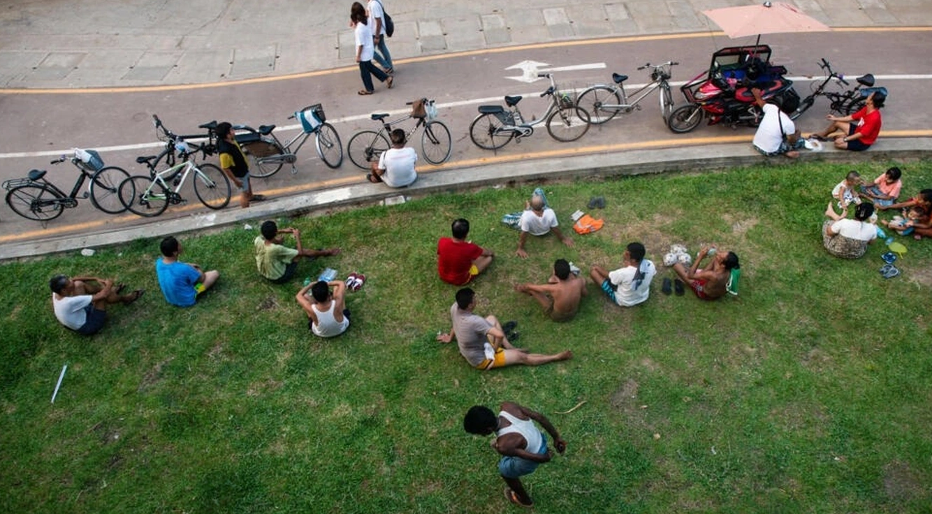 Người dân Myanmar đi tránh nóng ở các thảm cỏ trong công viên - Ảnh: AFP