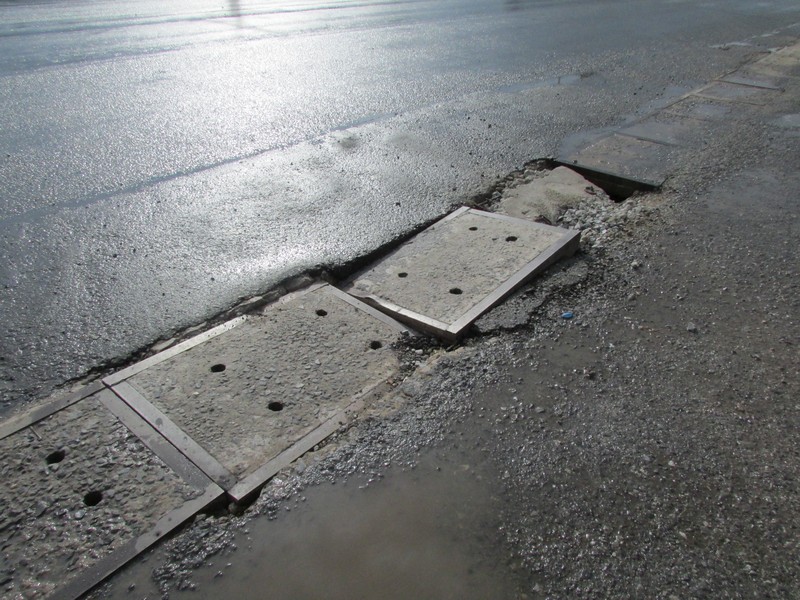 Những nắp cống bị bể trên đoạn QL22 (xã An Tịnh, huyện Trảng Bàng). |