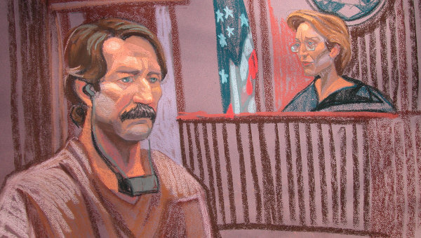Tranh vẽ Viktor Bout tại phiên xét xử ngày 2.11 |