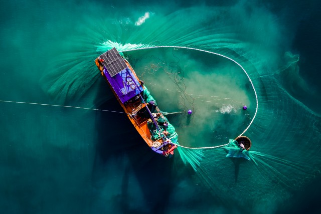 Bức ảnh chụp các ngư dân Việt Nam đang thu lưới đánh cá của Olivier Apicella được chọn là “Photo of the day” ngày 16/4/2019.