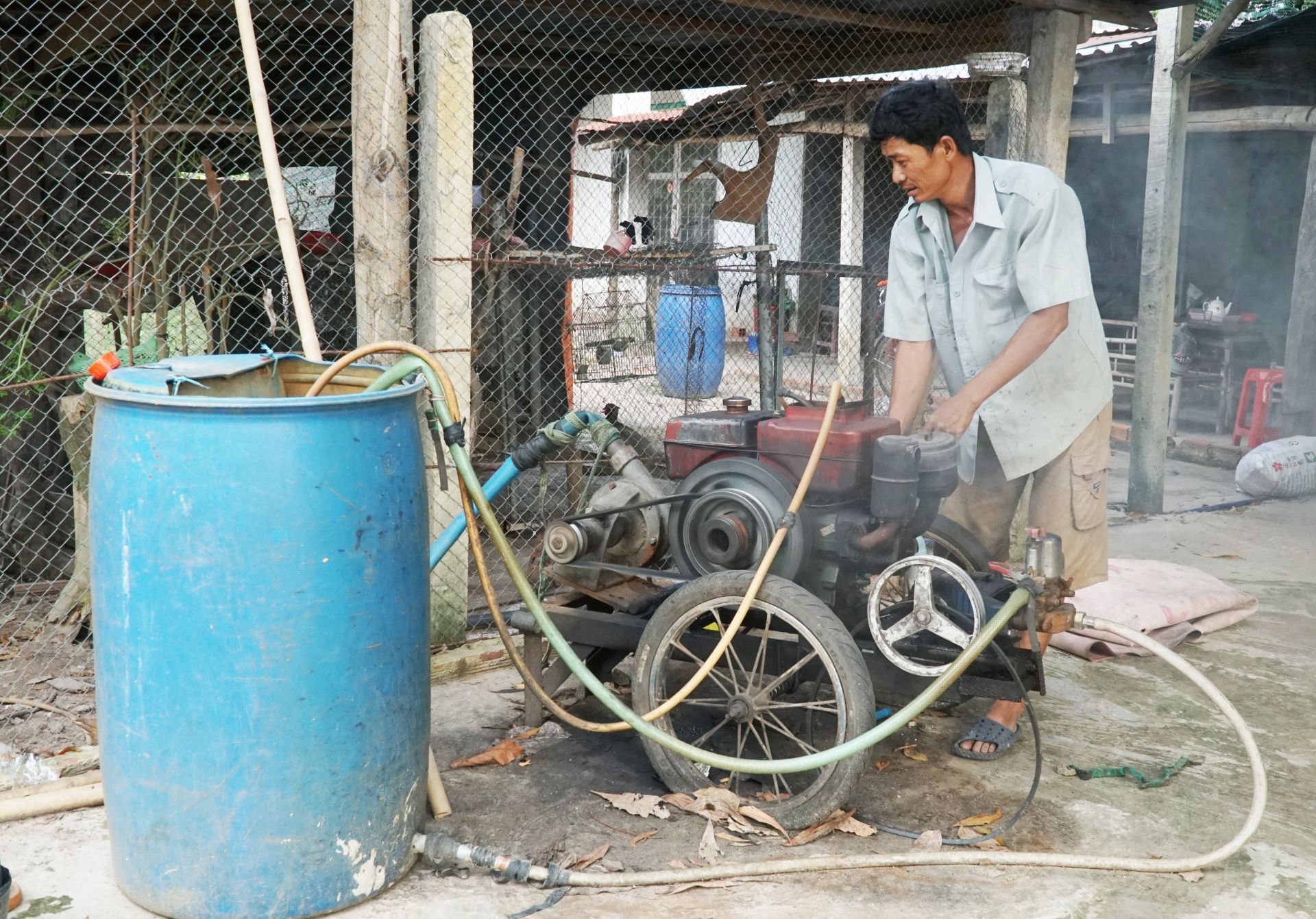 Vì không có điện lưới quốc gia, hàng chục năm qua, người dân tổ dân cư tự quản 11 phải sử dụng máy dầu bơm nước lên để sinh hoạt.