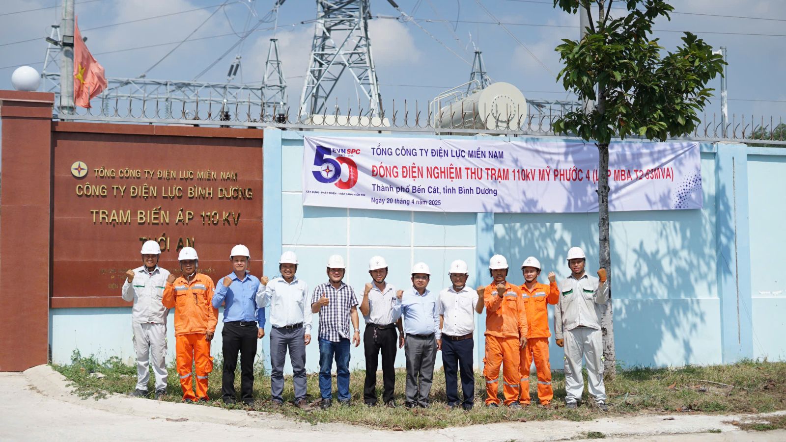 Tổng công ty Điện lực miền Nam (EVNSPC) đã chính thức hoàn thành 50 công trình lưới điện 110kV chào mừng 50 năm ngày Giải phóng miền Nam, thống nhất Đất nước và 50 năm xây dựng và phát triển EVNSPC (30.4.1975 – 30.4.2025). Đây là 50 công trình tượng trưng cho chặng đường 50 năm đồng hành cùng sự phát triển của miền Nam, đồng thời tiếp tục khẳng định vai trò nòng cốt của EVNSPC trong thực hiện sứ mệnh “Điện đi trước một bước” phục vụ phát triển kinh tế - xã hội và đời sống nhân dân tại 21 tỉnh thành phía Nam.