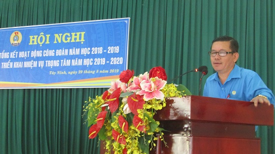 Phát biểu chỉ đạo nhiệm vụ trong năm học mới 2019 - 2020, ông Dương Đại Lộc- Phó Chủ tịch LĐLĐ tỉnh ghi nhận những phấn đấu của Công đoàn ngành Giáo dục. Ông đề nghị các công đoàn cơ sở cố gắng tiếp tục duy trì những kết quả đạt được và yêu cầu các công đoàn cơ sở ngành Giáo dục phải có những sáng kiến đóng góp, góp phần nâng cao chất lượng dạy và học, đẩy mạnh công tác đổi mới giáo dục và đạo tạo.