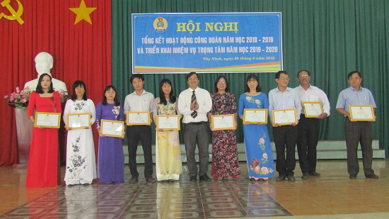 Dịp này, Công đoàn ngành Giáo dục trao bằng khen của LĐLĐ tỉnh, Công đoàn ngành Giáo dục Việt Nam, Công đoàn ngành Giáo dục Tây Ninh cho các cá nhân và tập thể công đoàn cơ sở có thành tích xuất sắc trong năm học 2018 – 2019.