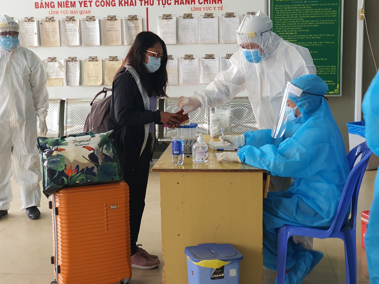 Người nhập cảnh làm thủ tục khai báo y tế tại Cửa khẩu quốc tế Mộc Bài. Ảnh minh hoạ