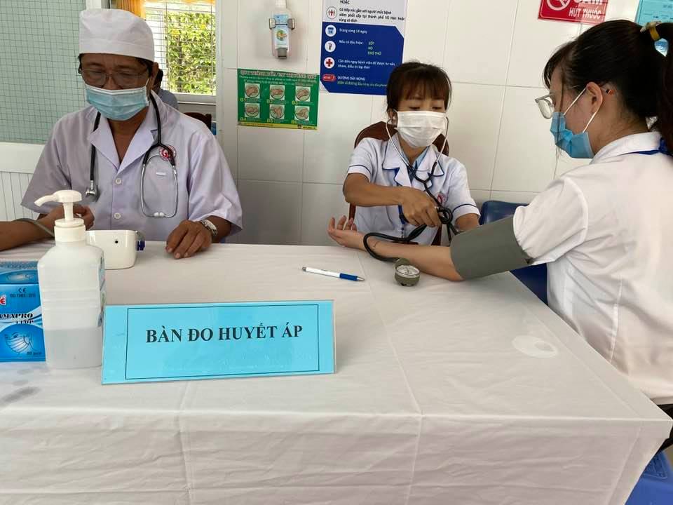 Đo huyết áp cho người dân sau khi tiêm vaccine phòng Covid-19. Ảnh minh hoạ