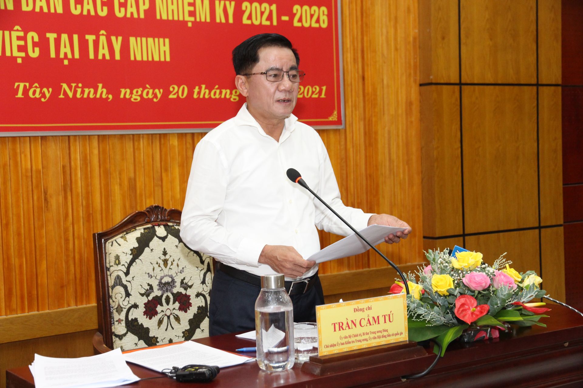 Ông Trần Cẩm Tú- Ủy viên Bộ Chính trị, Bí thư Trung ương Đảng, Chủ nhiệm Ủy ban Kiểm tra Trung ương, Ủy viên Hội đồng bầu cử Quốc gia lưu ý địa phương một số nội dung: Chỉ đạo việc lập danh sách cử tri theo hộ khẩu thường trú, tạm trú một cách chính xác, tránh bỏ sót sẽ ảnh hưởng đến quyền bầu cử của cử tri, dẫn đến khiếu nại.