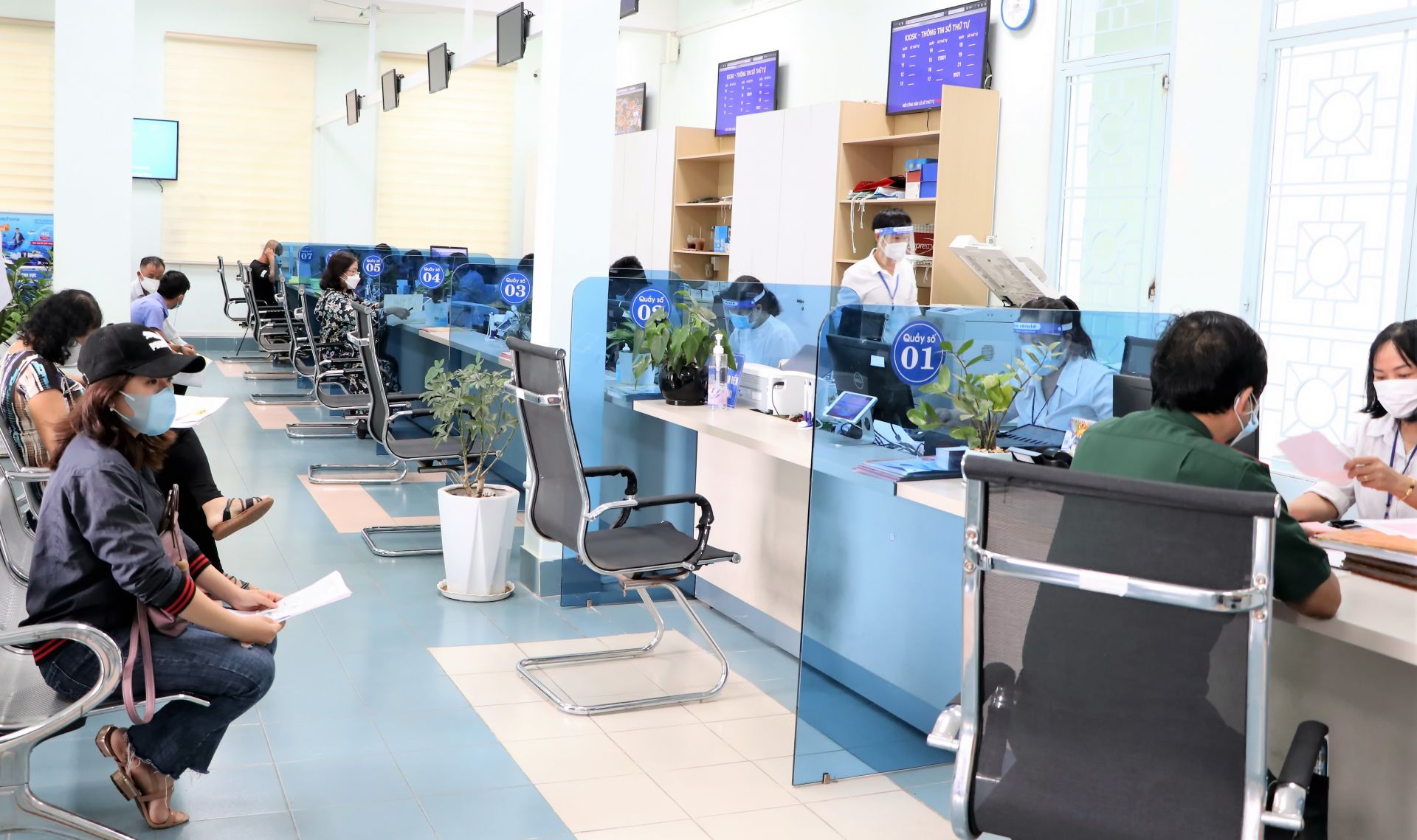 Ghi nhận trong buổi sáng 20.9, người dân, doanh nghiệp đến giao dịch TTHC trực tiếp tại Trung tâm hành chính công tỉnh không nhiều so với những ngày bình thường trước khi thực hiện giãn cách theo Chỉ thị 16 của Thủ tướng Chính phủ và đều chấp hành tốt các quy định phòng, chống dịch.