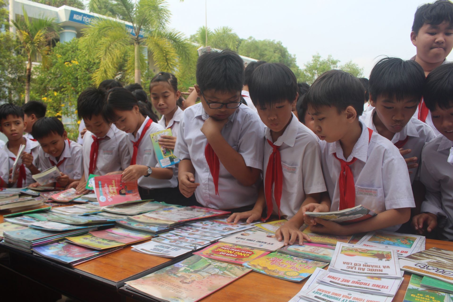 Trong ngày hội, các em nhỏ ở địa phương thỏa sức khám phá, tìm hiểu kiến thức với gần 300 đầu sách được trưng bày và tham gia trao đổi những cuốn sách hay mà mình tích lũy được.