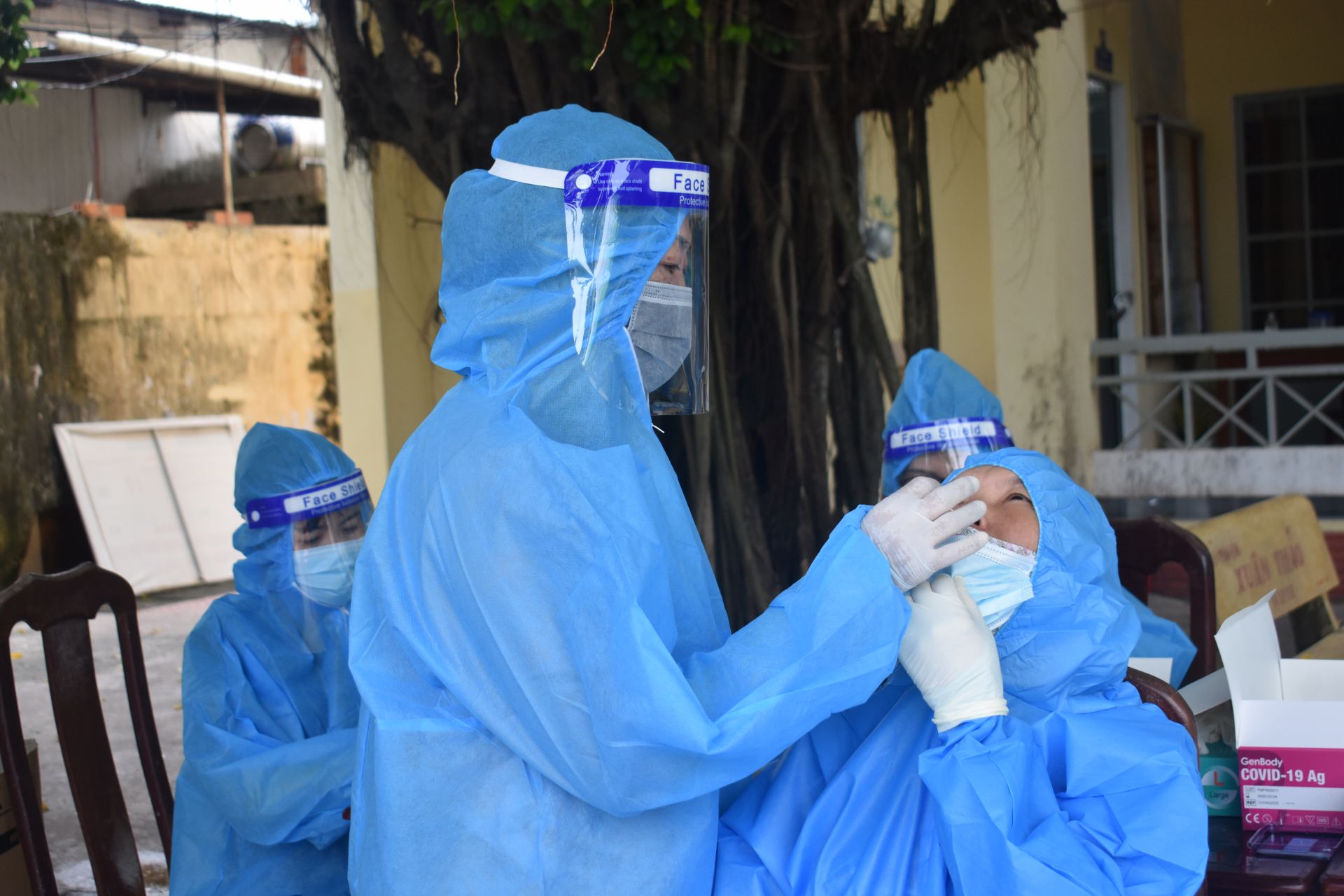 Nhân viên y tế lấy mẫu test nhanh.