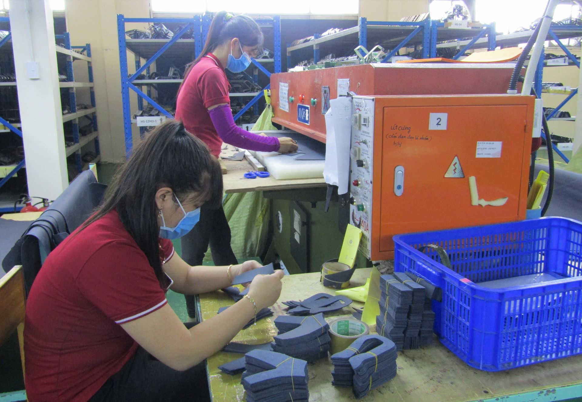 Công nhân làm việc tại một doanh nghiệp sản xuất giày.