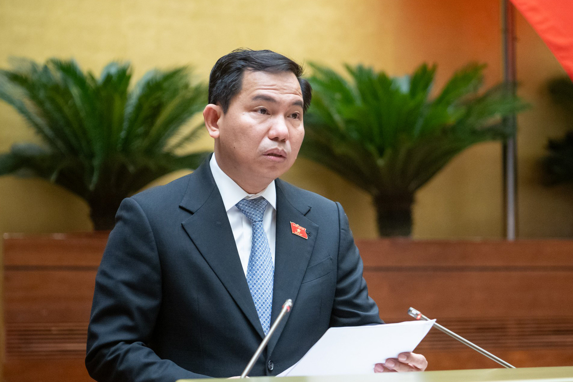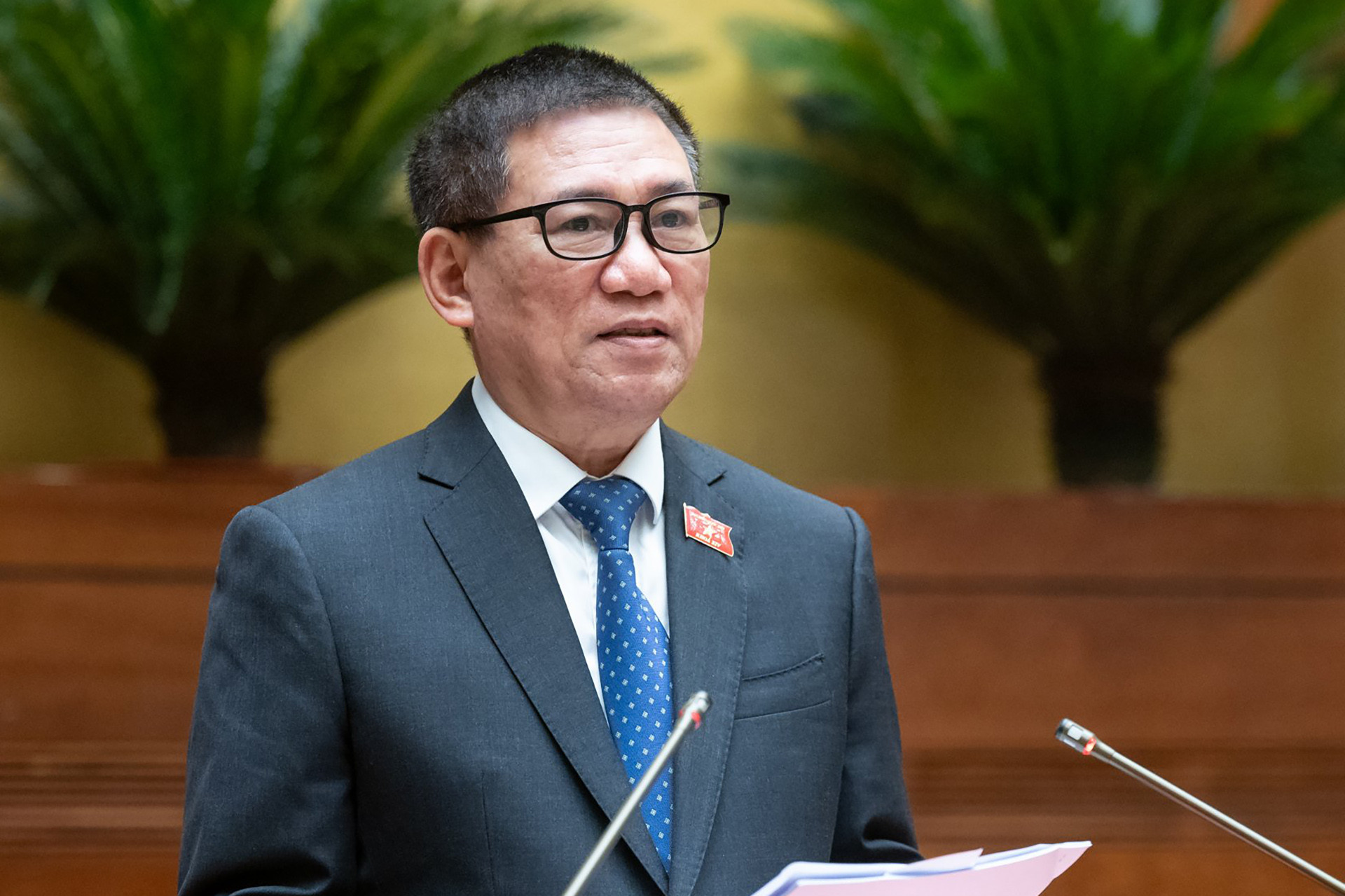 Bộ trưởng Bộ Tài chính Hồ Đức Phớc trình bày tờ trình chiều nay. Ảnh: Quốc hội