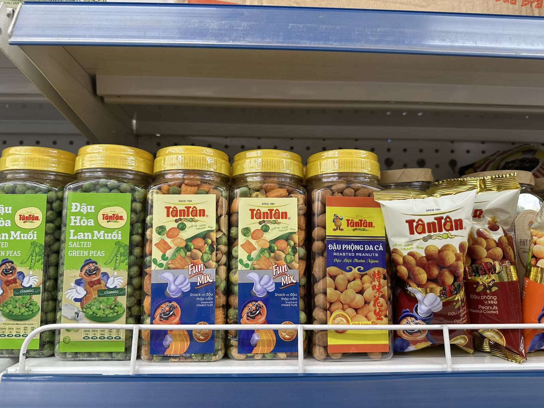 Một sản phẩm đậu phộng mang nhãn hiệu Tân Tân vẫn đang bán trên thị trường. Ảnh: Bạch Hân