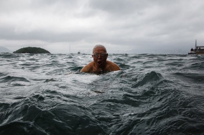 Ông Lau Sam Lan, 74 tuổi, đã bơi hàng ngày tại cảng Victoria trong suốt 30 năm qua. “Bơi lội giúp tôi cảm thấy khỏe mạnh và sảng khoái. Tôi sẽ rất khó chịu nếu không được bơi” - ông khẳng định.