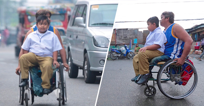 Mới đây, trên những trang mạng của Philippines lưu truyền rộng rãi một bức ảnh vô cùng cảm động của người cha dùng xe lăn đưa con đi học. Theo tờ báo Filipino Buzz, người cha đáng kính này là Tatay Alejandro. Dù ngày nắng hay ngày mưa, anh vẫn kiên trì đưa con tới trường. Dường như anh chưa bao giờ nghĩ khiếm khuyết trên thân thể là rào cản trong việc giúp con hoàn thành ước mơ.