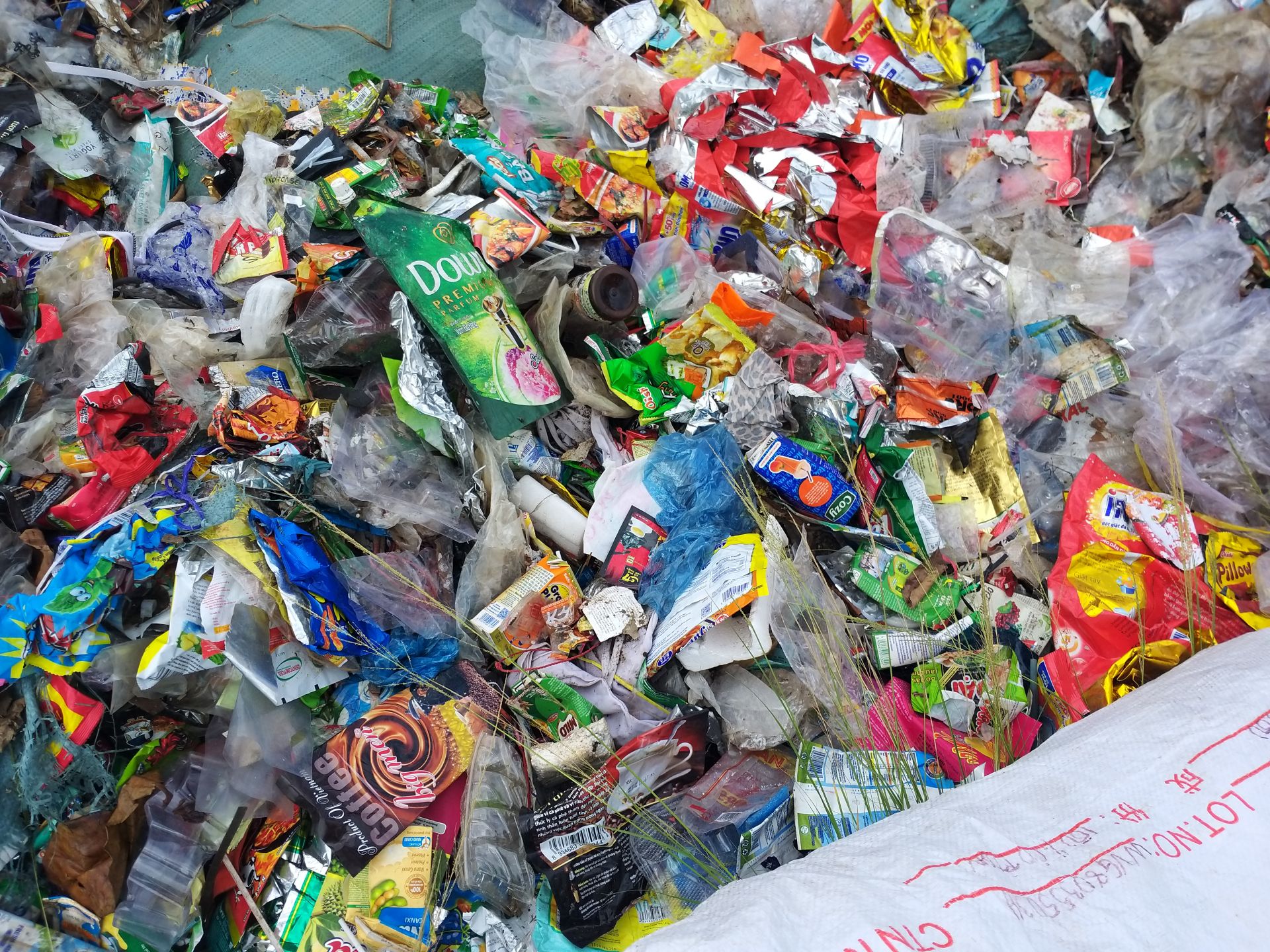 Bên trong các bao rác thải là các bao bì đựng bánh, chai thủy tinh, tả lót em bé ….