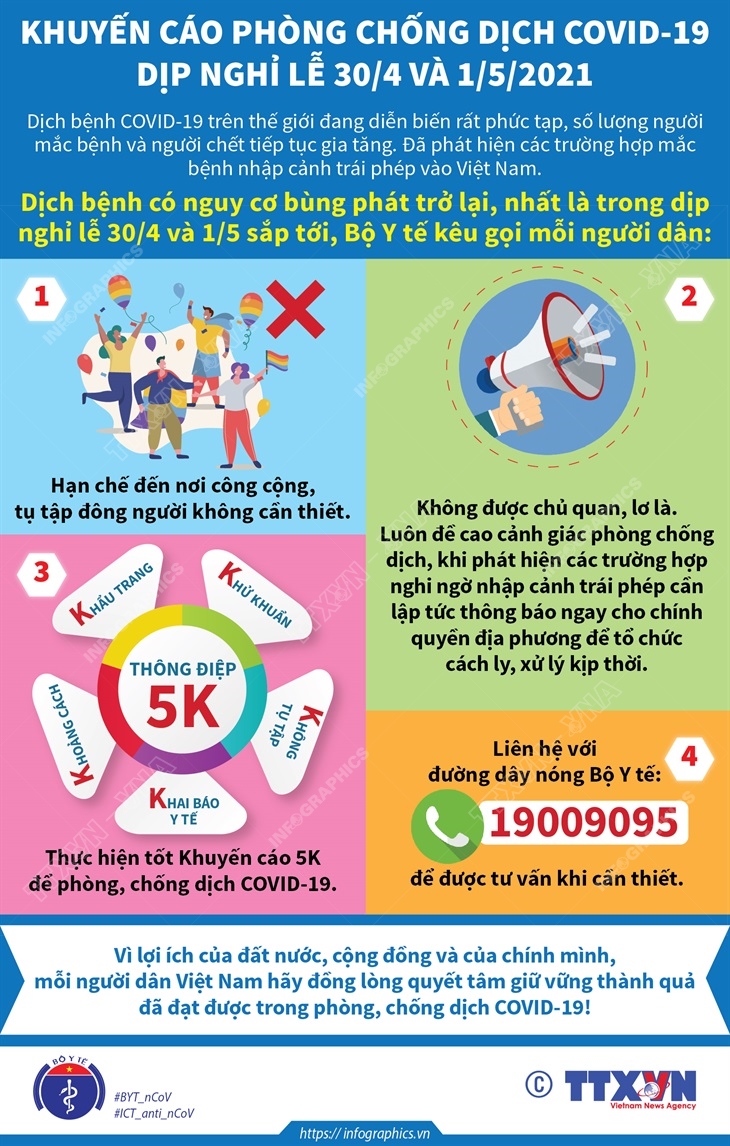 Thực hiện nghiêm thông điệp 5K của Bộ Y tế (đeo khẩu trang - khử khuẩn - không tập trung đông người - giữ khoảng cách khi tiếp xúc - khai báo y tế); bắt buộc 100% người điều khiển phương tiện, tiếp viên, nhân viên, người phục vụ và hành khách… phải luôn đeo khẩu trang đúng cách trong khu vực bến xe, bến phà, nơi đông người và trên các phương tiện vận tải hành khách; từ chối vận chuyển các trường hợp hành khách không đeo khẩu trang theo đúng quy định.