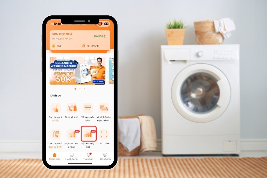 Các bước đặt lịch vệ sinh máy giặt tại app bTaskee