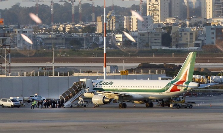 Máy bay của hãng Alitalia tại sân bay Ramon, phía nam Israel hôm 27/2. Ảnh: AFP.