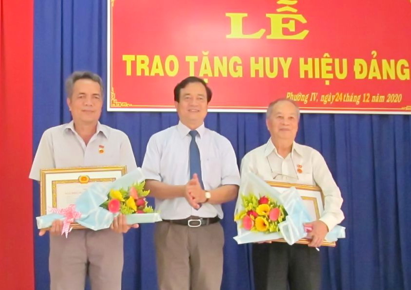 Huy hiệu 30 năm tuổi Đảng được trao cho đảng viên Phạm Văn Nhỏ (sinh năm 1966, quê quán xã An Thạnh, huyện Bến Lức, tỉnh Long An); hiện sinh hoạt Đảng tại chi bộ 3, Đảng bộ bộ phận khu phố 5, Đảng bộ phường IV.