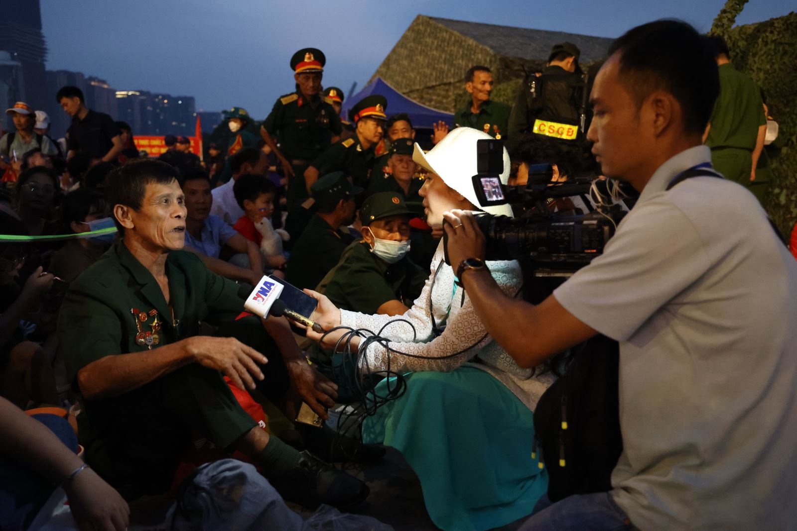 Hình ảnh nhà báo, phóng viên tác nghiệp tại buổi Sơ duyệt cấp nhà nước Lễ diễu binh, diễu hành kỷ niệm 50 năm Ngày Giải phóng miền Nam.