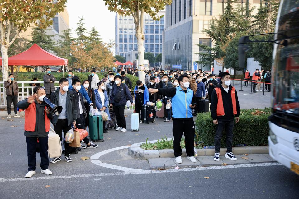 Sau phỏng vấn, công nhân được đưa đến khu cách ly trước khi làm tại dây chuyền lắp ráp iPhone. Ảnh: Xuchang Daily