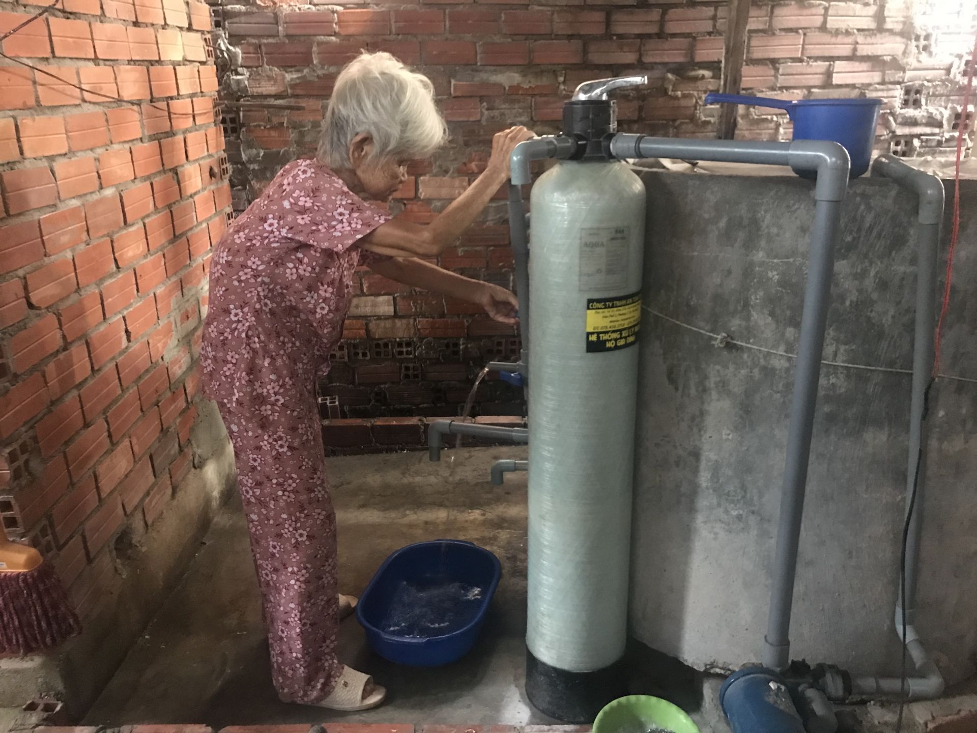 Ngoài căn nhà đại đoàn kết, cụ Sề còn được tặng hệ thống máy lọc nước để sử dụng.