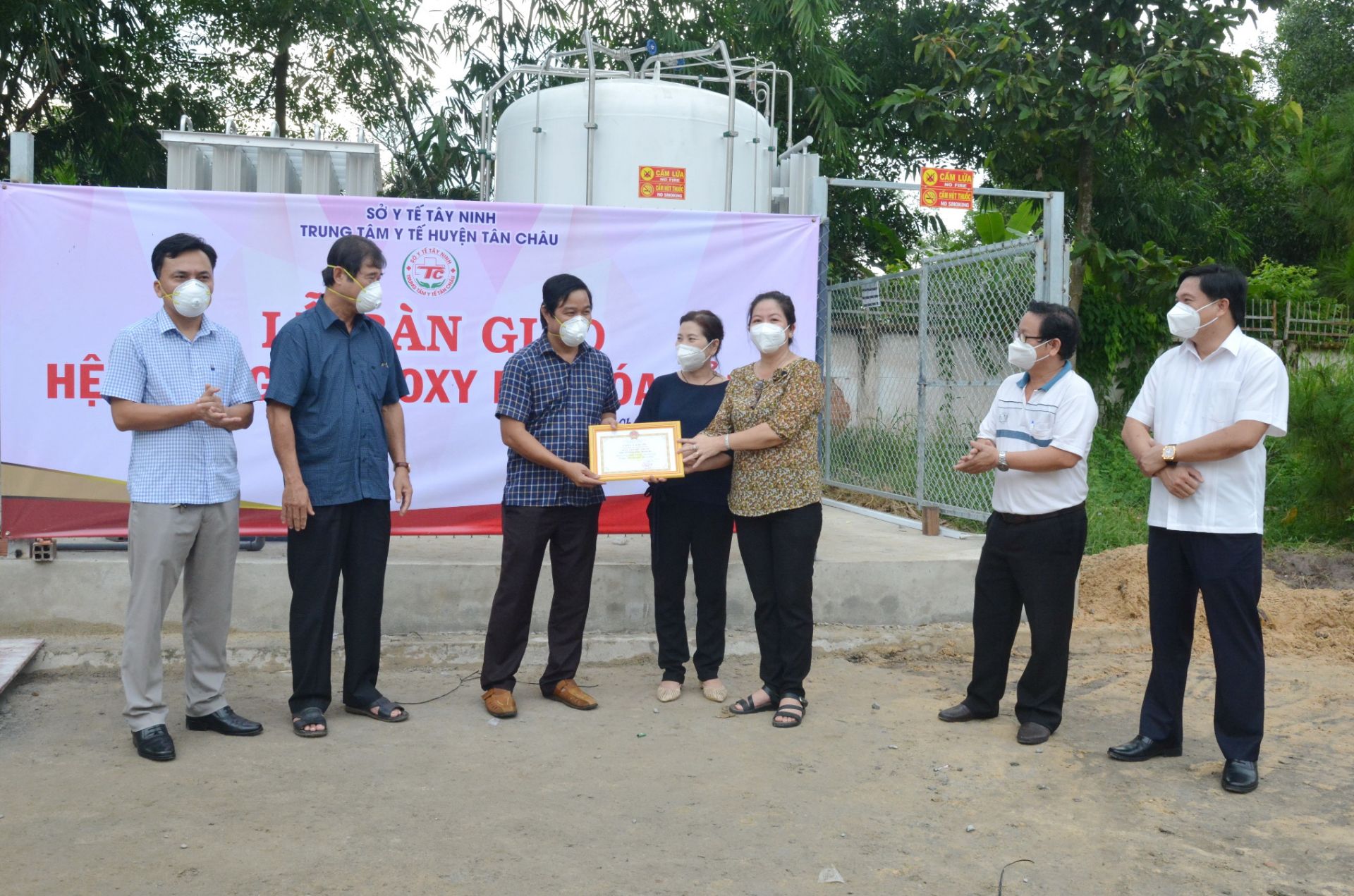 Chiều 3.9, tại Trung tâm Y tế huyện Tân Châu, diễn ra buổi lễ bàn giao hệ thống bồn oxy khí hóa lỏng. Đến dự có ông Trần Văn Chiến- Phó Chủ tịch UBND tỉnh, ông Nguyễn Văn Cường- Bí thư Huyện ủy, bà Nguyễn Thị Phượng- Phó Chủ tịch UBND huyện cùng đại diện nhà tài trợ Công ty TNHH Đồng Thuận Hà.