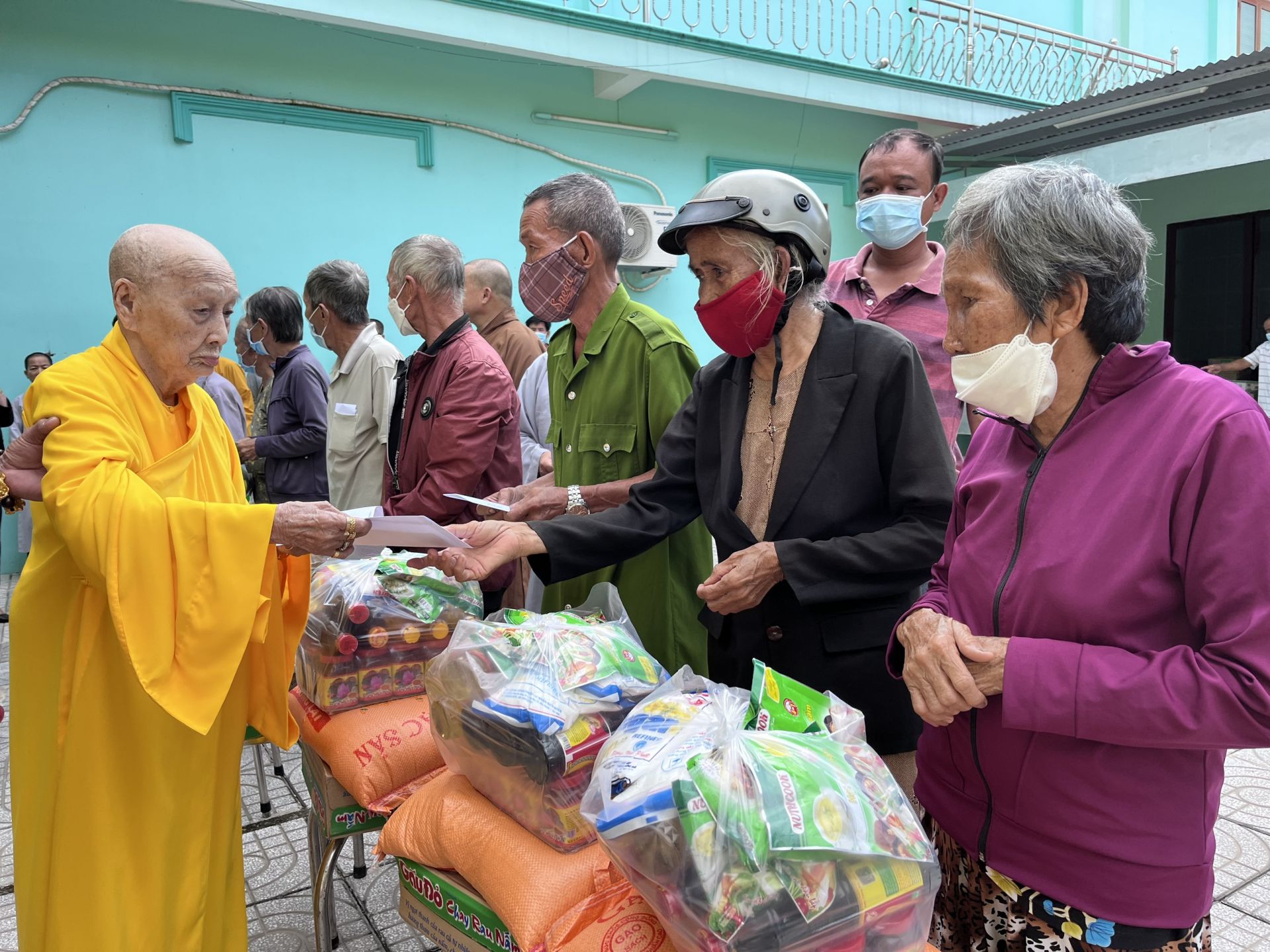 Cùng ngày, Ni trưởng Thích nữ Diệu Nghĩa trao tặng 200 phần quà, với tổng trị giá 138 triệu đồng cho người dân có hoàn cảnh khó khăn trên địa bàn xã Phan (huyện Dương Minh Châu) và xã Thạnh Tân, phường Ninh Sơn, phường Ninh Thạnh (thành phố Tây Ninh). Mỗi phần quà gồm gạo, mì, nước tương, dầu ăn, chao, đường… trị giá 490.000 đồng và 200.000 đồng tiền mặt.