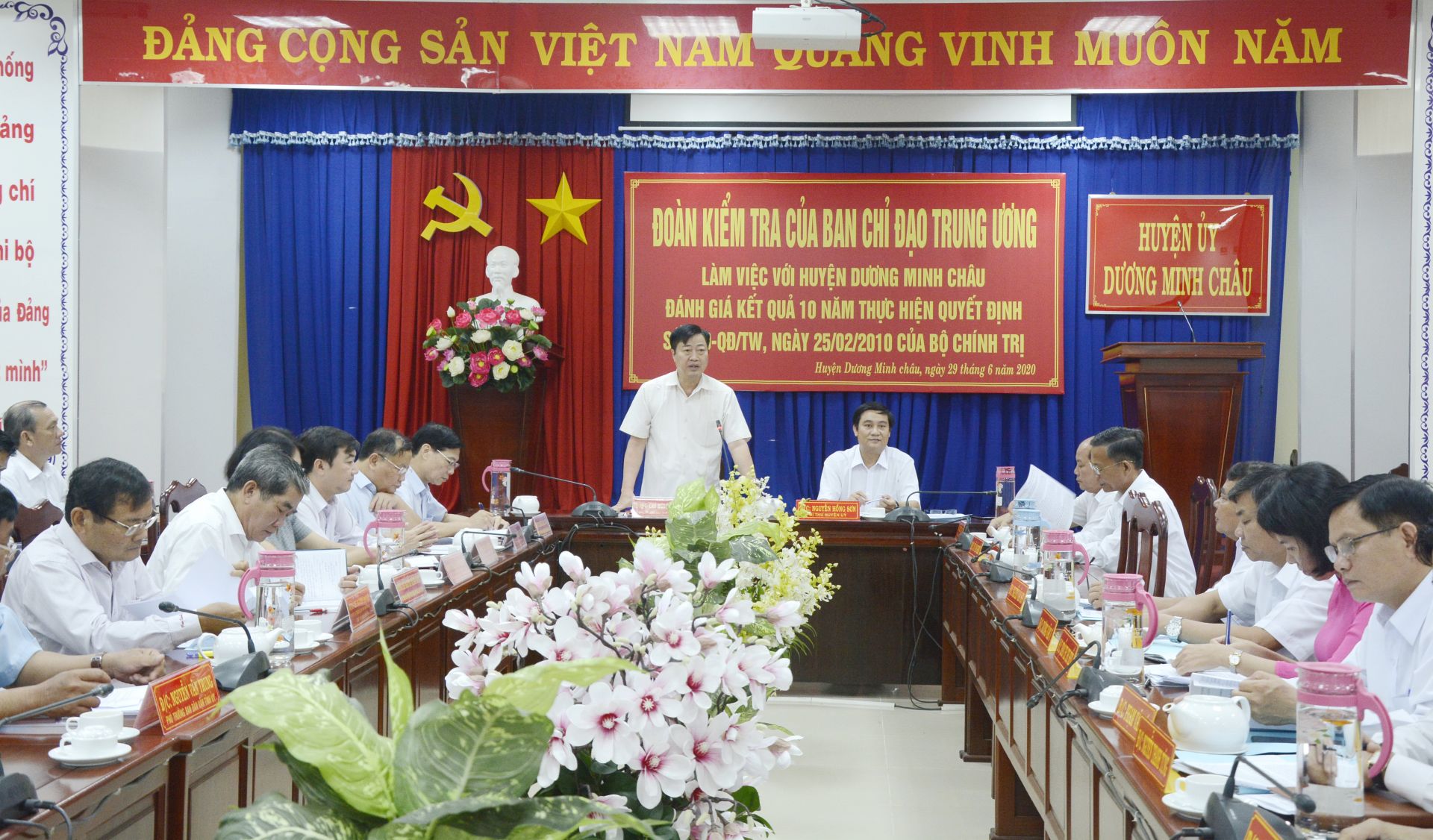 Quang cảnh buổi làm việc của Đoàn công tác Trung ương tại Huyện uỷ Dương Minh Châu.