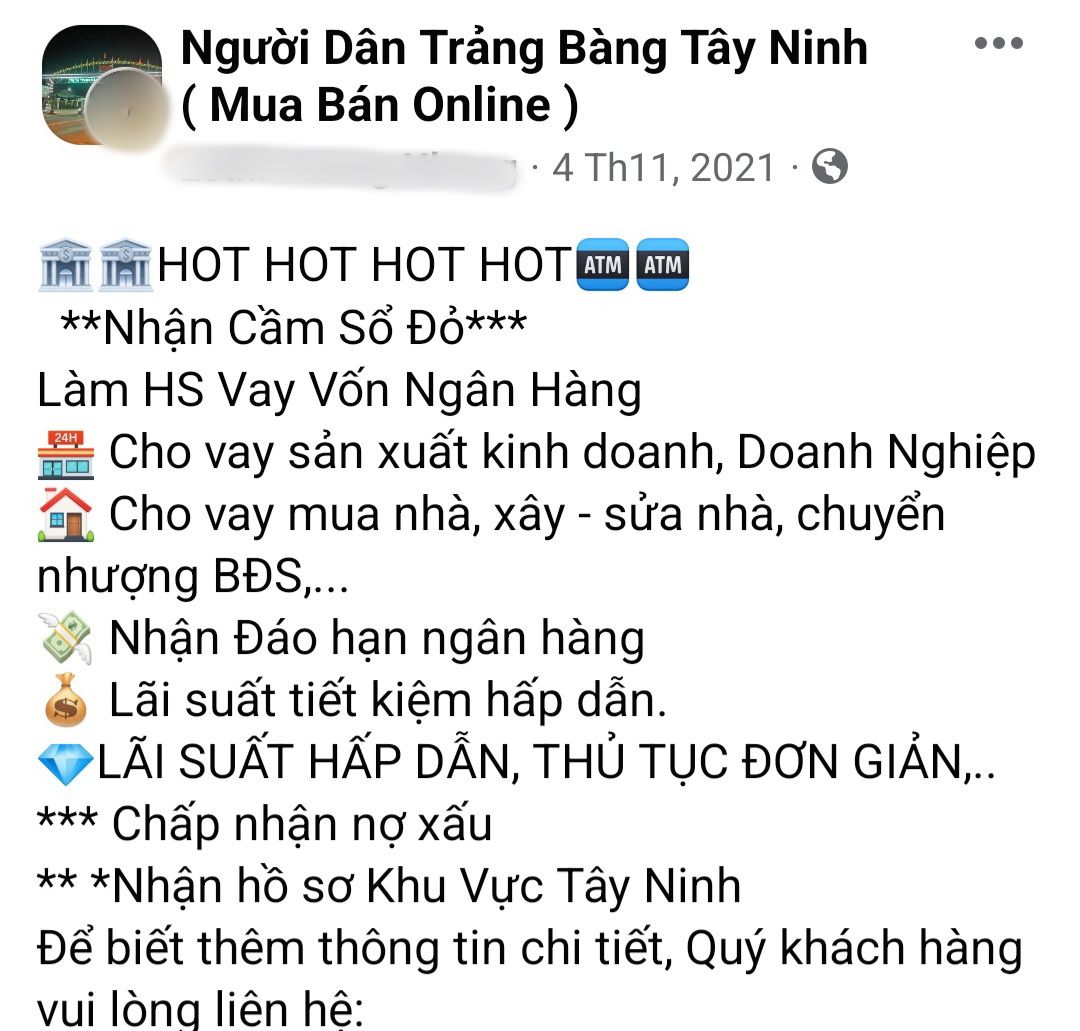 Dư luận thời gian qua đều nhắc nhiều đến dịch vụ cho vay “đáo hạn ngân hàng”, trên mạng xã hội Facebook chỉ vào từ khoá vay tiền đáo hạn ngân hàng là có nhiều dịch vụ phục vụ cho người có nhu cầu.