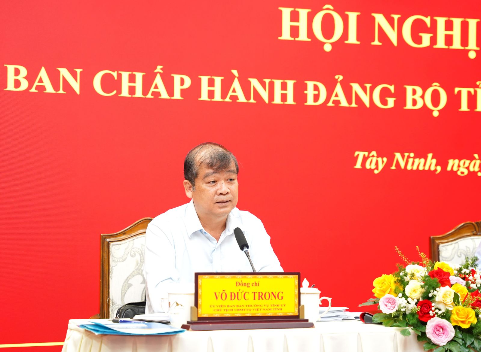 Bí thư Tỉnh uỷ, Chủ tịch HĐND tỉnh Nguyễn Mạnh Hùng; Chủ tịch Uỷ ban MTTQVN tỉnh, Trưởng Ban Tổ chức Tỉnh uỷ Võ Đức Trong và quyền Chủ tịch UBND tỉnh Nguyễn Hồng Thanh chủ trì hội nghị.