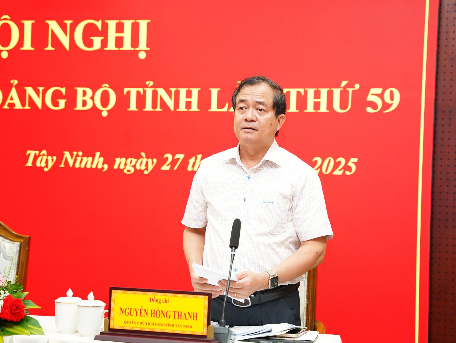 Nhấn mạnh các nhiệm vụ trọng tâm trong 6 tháng cuối năm 2025, quyền Chủ tịch UBND tỉnh Nguyễn Hồng Thanh đề nghị hệ thống chính trị nhanh chóng ổn định tổ chức bộ máy sau khi sáp nhập tỉnh, sắp xếp các đơn vị hành chính cấp xã, bảo đảm vận hành thông suốt, hiệu năng, hiệu lực, hiệu quả mô hình tổ chức chính quyền địa phương 2 cấp.