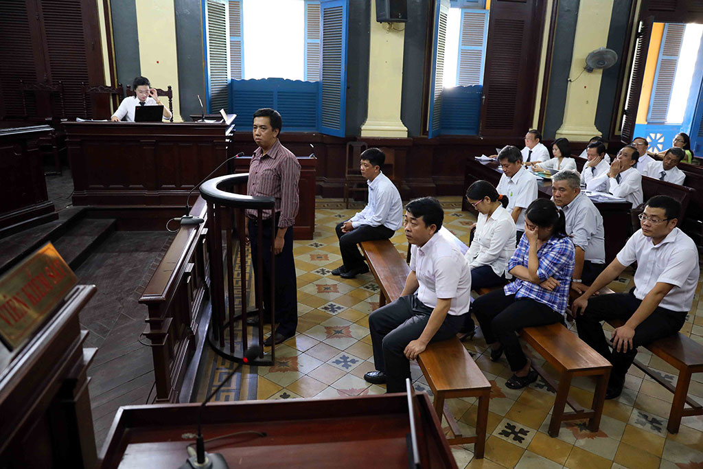 Phiên xét xử sơ thẩm vụ án làm giả con dấu, tài liệu của cơ quan tổ chức và buôn lậu xảy ra tại công ty cổ phần VN Pharma - Ảnh: HỮU KHOA