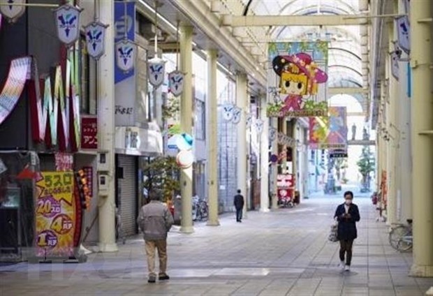 Nhiều cửa hàng phải đóng cửa do dịch COVID-19 tại khu phố thương mại ở Gifu, Nhật Bản. (Ảnh: Kyodo/TTXVN)