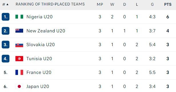 U20 Nhật Bản không nằm trong nhóm 4 đội đứng thứ 3 có thành tích tốt để góp mặt ở vòng knock-out World Cup 2023.